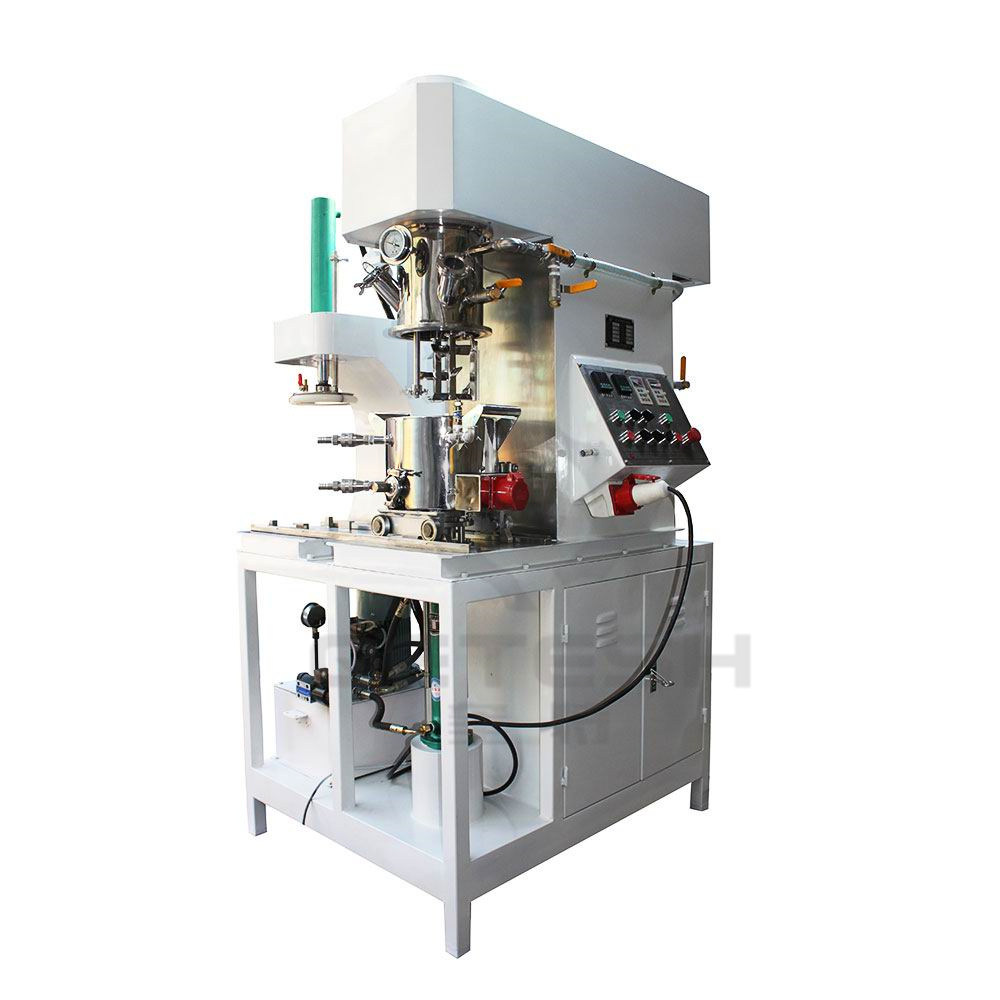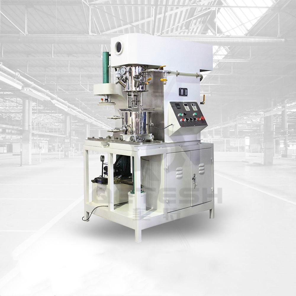 雙行星動(dòng)力混合機(jī)是一種新型且對多種混合液體、粉體進(jìn)行攪拌、溶解、分散、均質(zhì)的攪拌設(shè)備。該設(shè)備配有高速、低速、活動(dòng)刮板部件,低速攪拌部件采用行星齒輪傳動(dòng),攪拌槳在公轉(zhuǎn)時(shí)也自轉(zhuǎn),使物料上下及四周運(yùn)動(dòng),從而在較短的時(shí)間內(nèi)達(dá)到理想的混合效果。高速分散/乳化部件與行星箱一起公轉(zhuǎn),同時(shí)高速自轉(zhuǎn),使物料受到強(qiáng)烈的剪切與分散混合,罐體內(nèi)壁為大型立車精加工,再經(jīng)大型拋光機(jī)自動(dòng)拋光,確保行星箱上的活動(dòng)刮刀在旋轉(zhuǎn)時(shí),把罐體內(nèi)壁上的物料完全刮掉,其混合效果是普通混合機(jī)的幾到幾十倍。廣泛應(yīng)用于電池、有機(jī)硅膠、高端油墨、染料、粘膠劑、高端高粘度涂料等化工產(chǎn)品的生產(chǎn)。